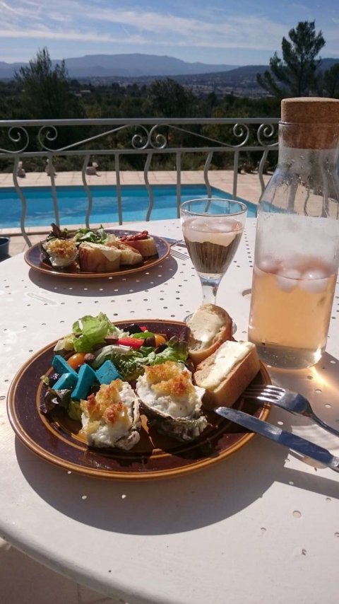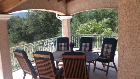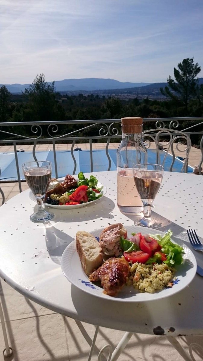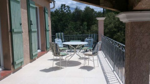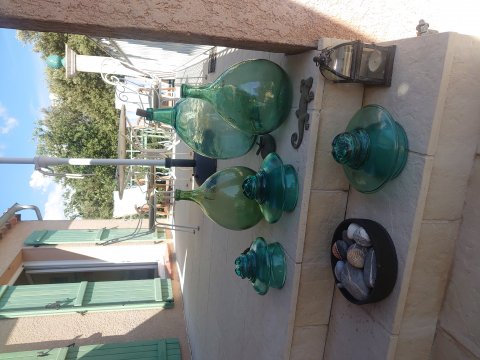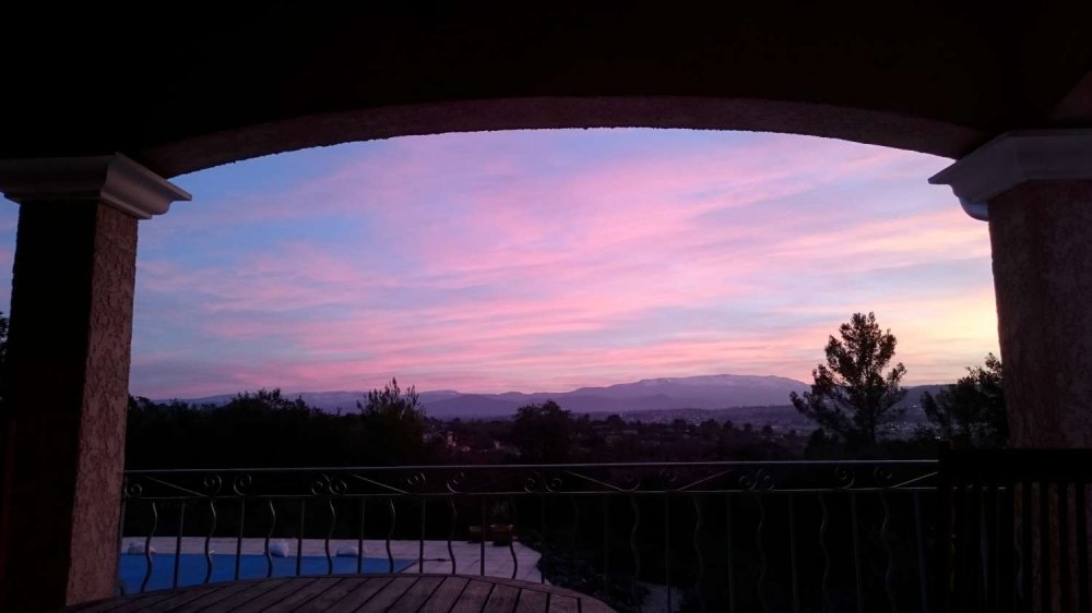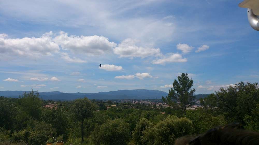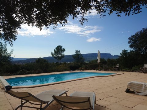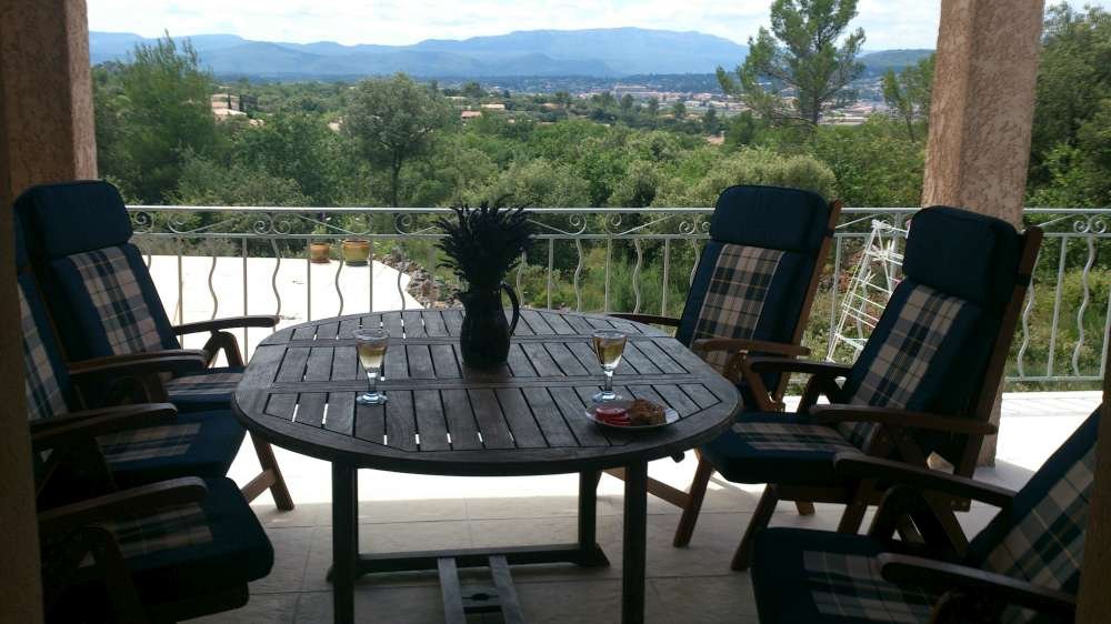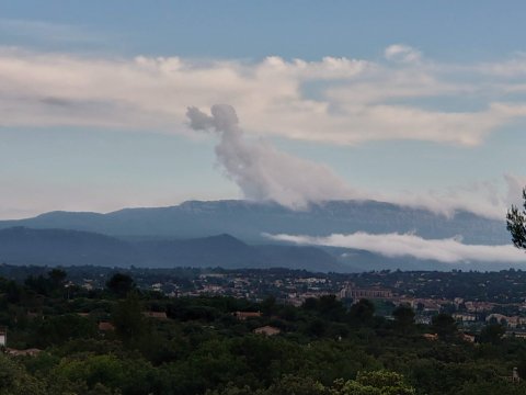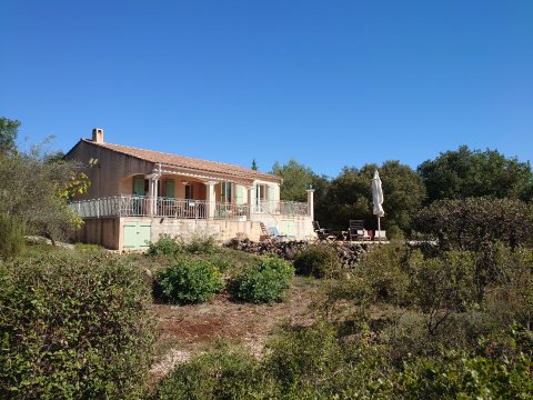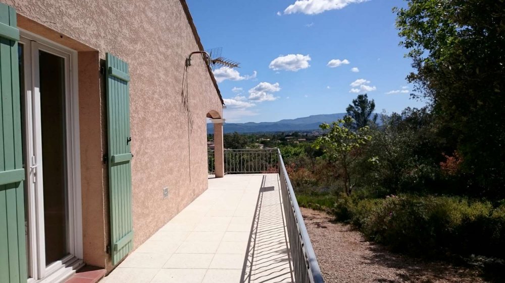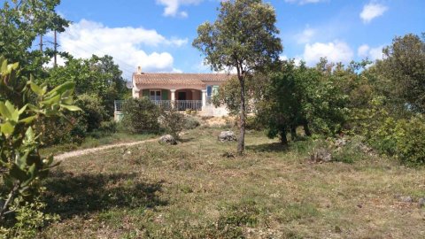 Stor grund på over 6200m2 på bakketop. Der er fra huset en pragtfuld udsigt over byen Saint Maximin, samt bjerg massivet La Sainte Baume mod syd. Grunden er ugenert med hegn hele vejen rundt. Grunden er en naturgrund med oliven, vildvoksende egetræer og krydderurter som rosmarin og timian. Der er stier rundt på hele grunden så det er muligt at gå en tur uden at forlade grunden. Der er et rigt dyreliv på området.